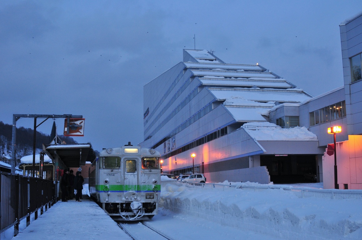 それはそうと周りの景色はどんどん雪深くなってくる。この路線を前に乗ったのはもう10年以上前のことだ。その時もこの時期だったなぁ。その後この町は財政破たんしその間を全国にさらすこととなってしまった。そうでなくても夕張と言えば炭鉱町で石炭産業がだめになるにつれ右肩下がりで寂れていったイメージ。(←すんません) そこに財政破たんとくればもう目も当てられないくらい町が沈んでるのではなかろうかと勝手に想像する。