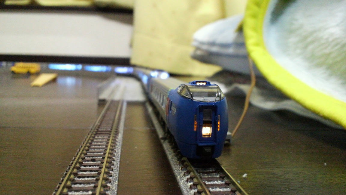 先週の話。チビがNゲージしようとうるさいので久々にNゲージをした。で、走らせたのがキハ283系のスーパーおおぞらだったんだけど、いつもの6両に5両の増結セットを加えた11両で走らせた。この5両増結セット、走らせるのは初めてだったんだけど買ったのはなんと去年の1月である。北海道から帰ってきてNゲージ魂に火が付きぽちのネット通販で購入した。しかし僕の悪い癖というかなんというか買った時点で満足してしまい、まさかの1年間ほったらかし。そして今年、1年ぶりに日の目を見たわけである。いや~待たせたな。