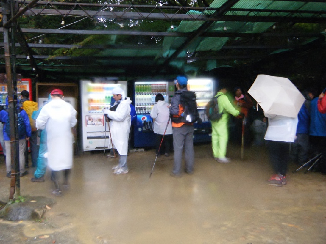 鍋蓋山を通過して市ヶ原に向けて再び下る。そして大龍寺に到着。いつもはゴミ箱からあふれかえっている容器が目印の自販機が今日はまだ全然きれいだ。しかも全然人がたむろしていない。なんだこれは??ひょっとして俺はわりかし先頭の方を歩いているんじゃあるまいかと錯覚しそうなほどにきれいに片付いている。なのでここで水分補給をすることにした。市ヶ原の自販機は割高だけどここは普通の料金で購入できる。少々疲れてきたので体がジュースを求めていたのでまずはデカビタCを一気に胃へと流し込む。ふへぇ~生き返った。そしてペットのウーロン茶を2本購入し1本を背中のキャメルバックのハイドレーションへ補給する。そうこうしてるうちにだんだん後続の人たちが自販機の周りに集まってきた。混雑は嫌いなので早々にお暇する。