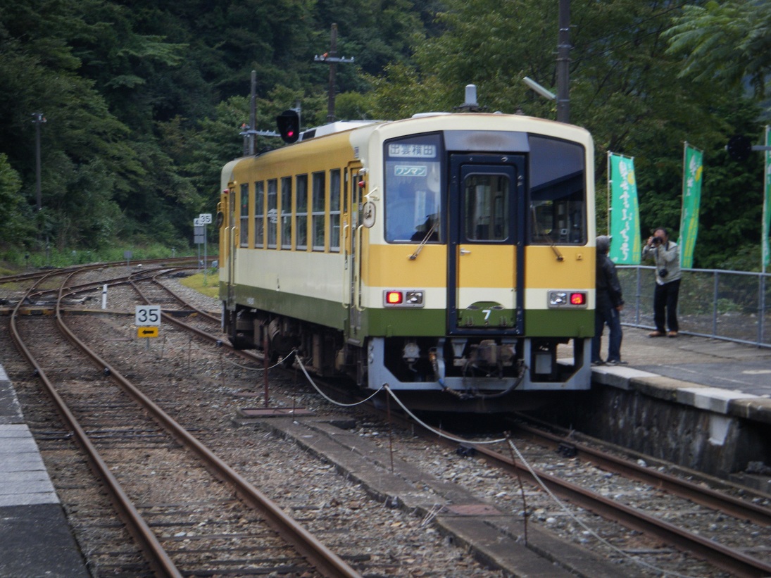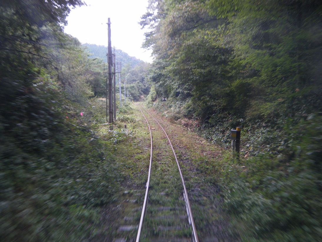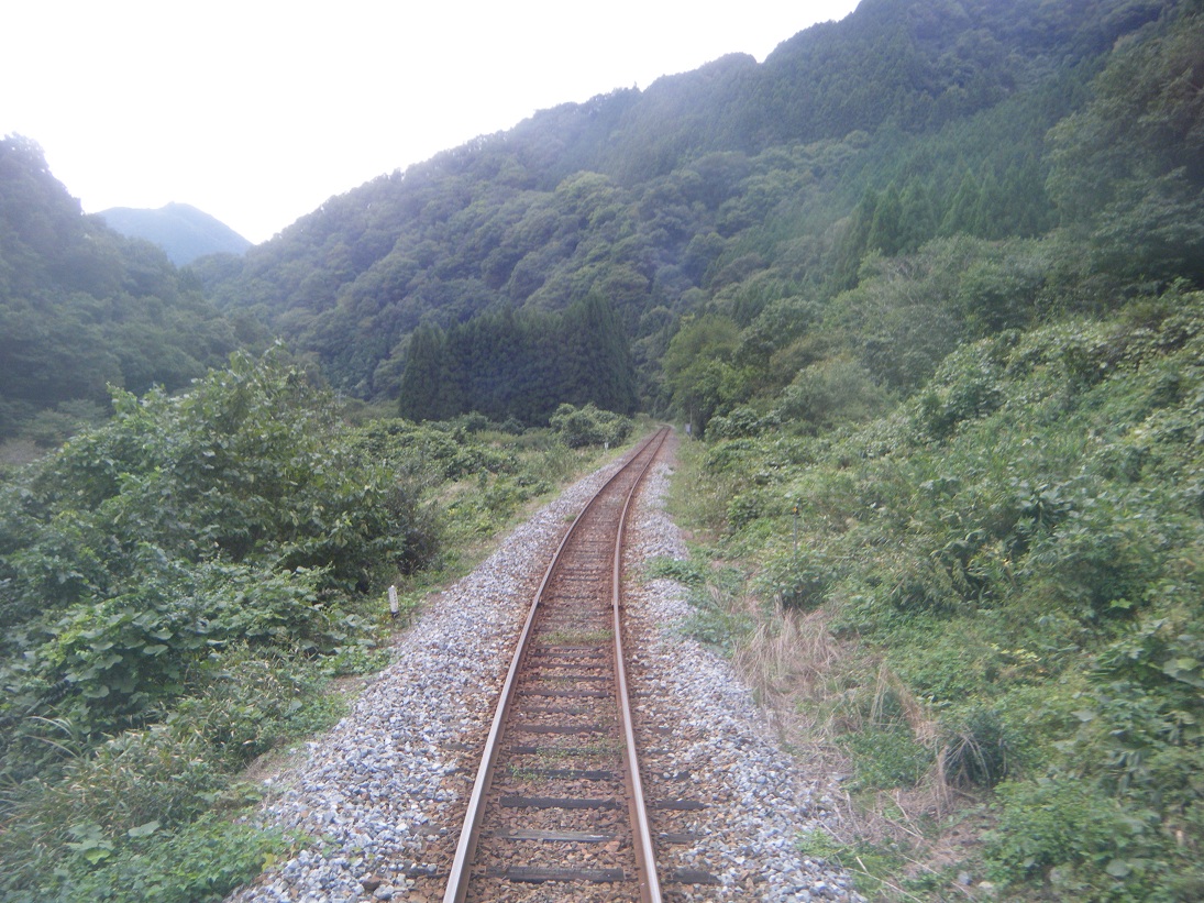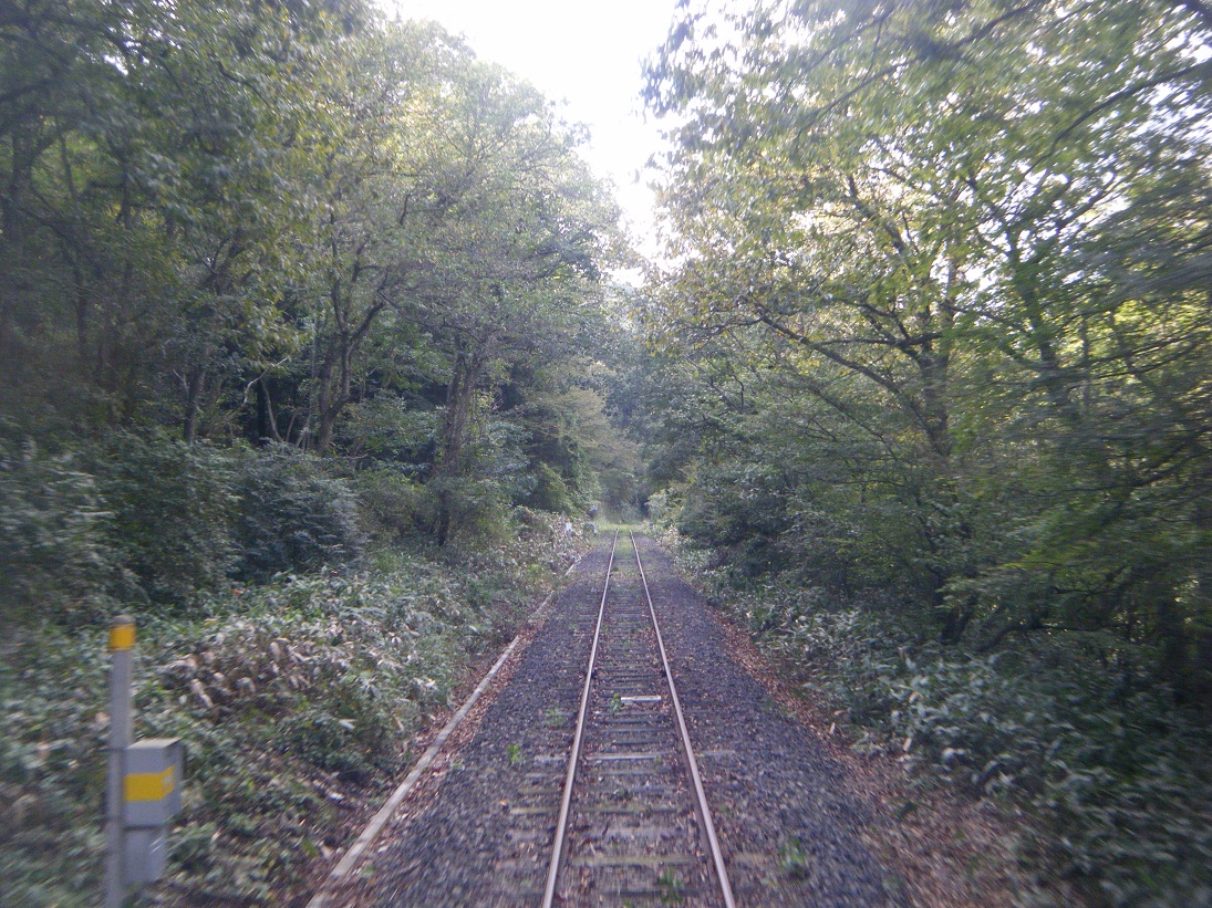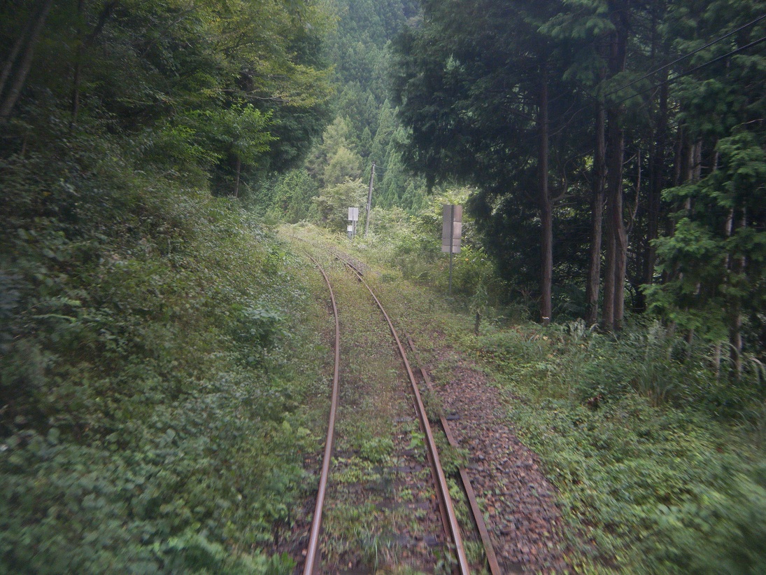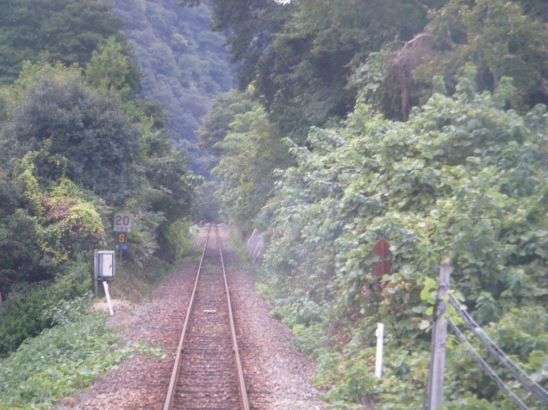 列車は先ほどよりもさらに山深いところを走る。時折線路側にせりだした木の枝と接触しながら走る。そして頻繁に現れる速度制限の標識。見通しの悪いカーブも多い。こりゃ線形が悪すぎるな。まぁ求められてはいないだろうけど簡単にはスピードアップを図れるような区間ではない。初めて乗る区間ではないけど前回乗ったのがもう7、8年前だから今回乗ってみて改めて感じた。