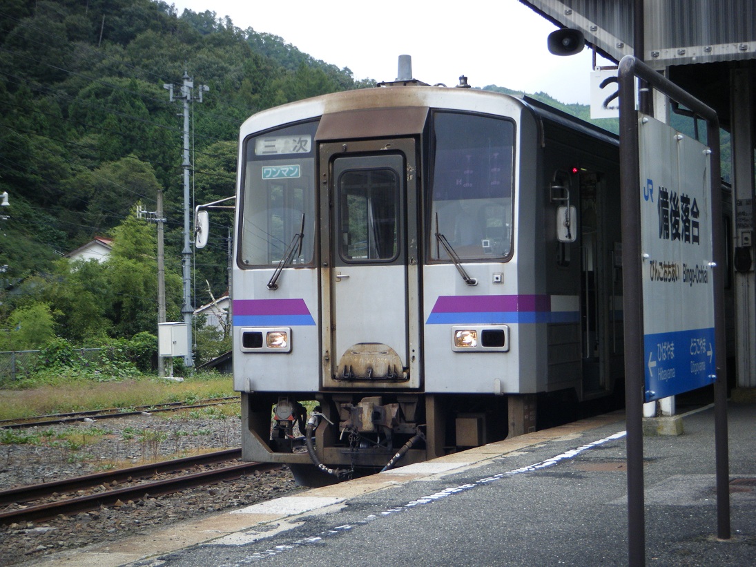 広島から三次に向かう途中にもこういう区間があり実際に線路わきの斜面が崩れてブルーシートがかけられているところがあった。まぁこのようなところに線路をひいているために崩れた土砂に乗り上げる、倒れた樹木に乗り上げるって事故は起こりがちだ。JR西日本は例の事故以来この手のものには多少神経質になりすぎな面があるような気がする。安全第一はわかるんだけどやりすぎてもねぇ。