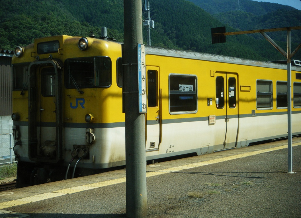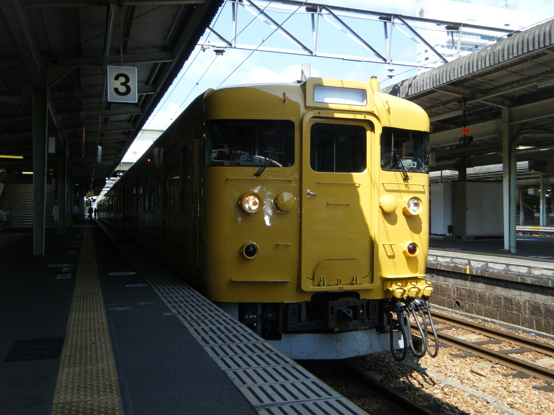 乗車率は30~40%といったところか。僕は3両目のキハ40のボックス席を独り占めしている。いや~いいね。足をどーんと投げ出して窓の外を眺める。広島始発ながら完全にローカル線の趣だ。広島出発後すぐ進行方向右手の車両基地に大量の真っ黄っ黄の113系(115系??)が停まっていた。だぁ~もう駄目だな。金曜日の段階では福山で1本見ただけだったからまだ大丈夫かと思ったけどだいぶ真っ黄っ黄の勢力が侵食してきている。