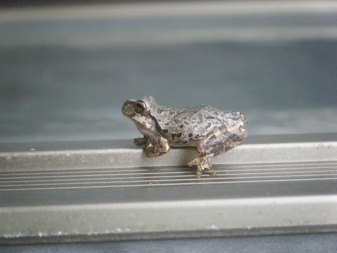 アマガエル。茶色いところにいるので色が茶色になっている。