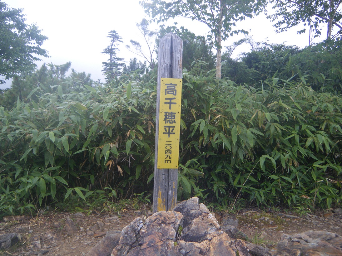 はしごとも階段とも言えない何とも微妙なのをいくつも下り高島平に到着。尾根の上部で3人とすれ違って以来全然人とすれ違わない。静かな山行である。心配した雨の方はポツポツ程度で本格的には降ってこない。しかし周りはガスに覆われている。