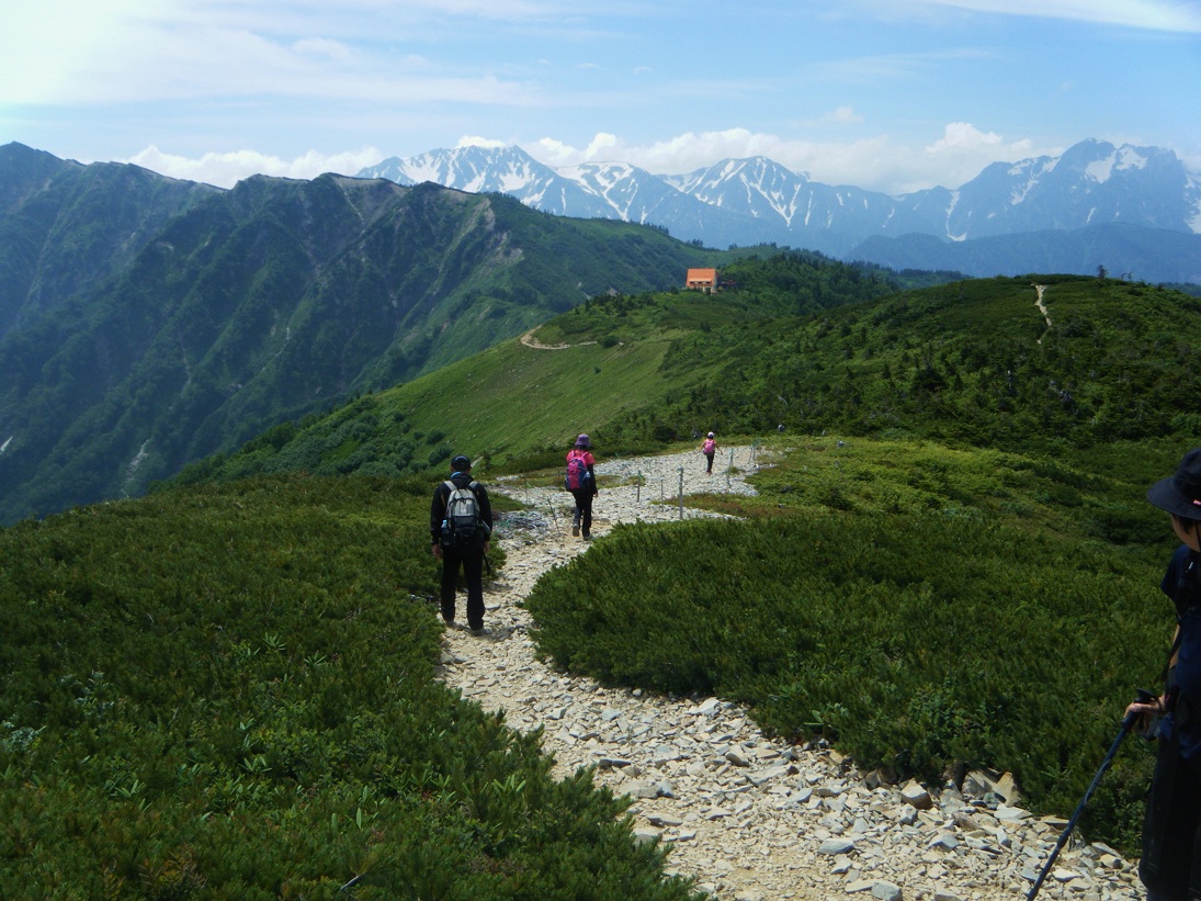 しかし一応の宿泊地の種池山荘のテン場まではコースタイムで4時間足らず。ここに泊まるなら9時スタートでも十分だ。