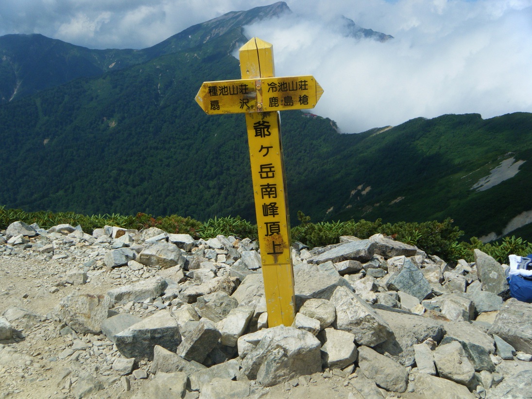 種池山荘で登山バッチ(鹿島槍・爺ヶ岳)と水を2本購入。疲労困憊のK籐に「冷池まで行くか?」というと行くという。時刻はまだ13時前。今日のこの天気なら夕立も含めて雨はなさそうだ。しかし今のK籐のペースでは非常に不安だ。途中でへばらなければいいけど・・・。「なんか荷物よこせ。持ってやるから」と言っても頑なに拒む。根性はあるな。さすがへばってもK籐。