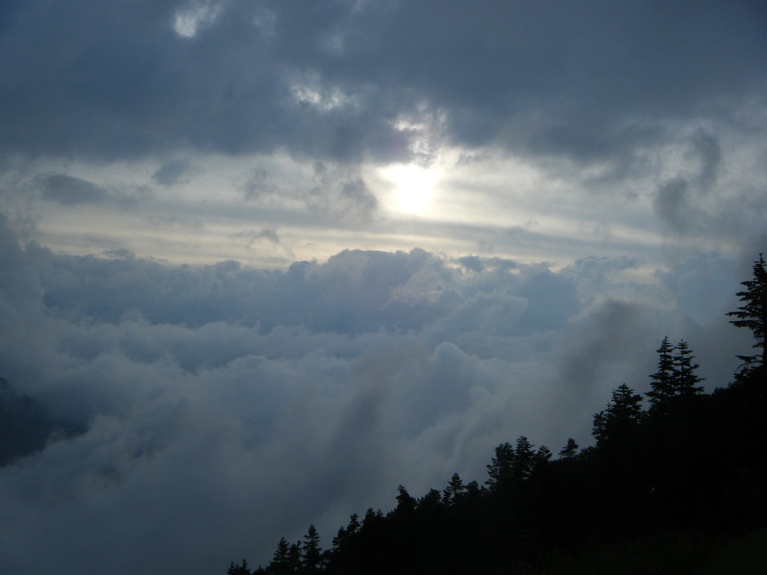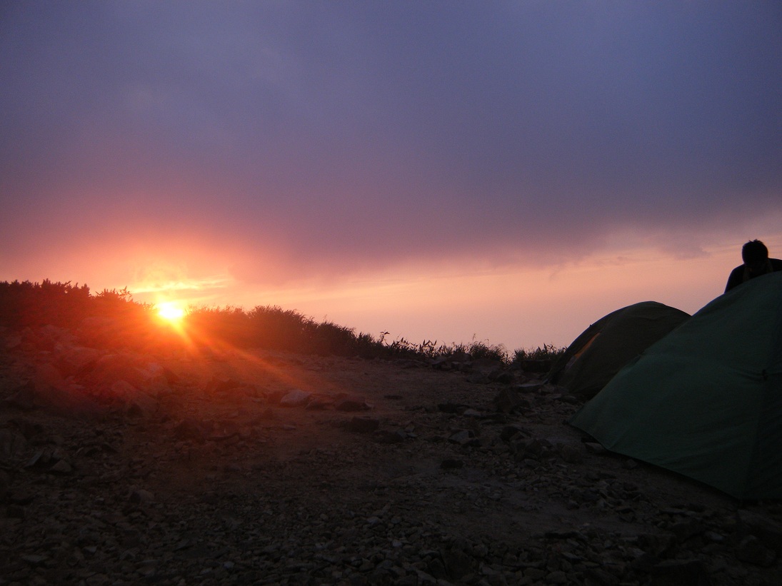 テン場まで登ってテントを設営。見れば西の谷からぐわっとガスがわいてきた。その後早めの夕食。ぺヤングのカップ焼きそばだ。夕食を済ますと小屋まで下りてビールで乾杯。生は900円、500ml缶は700円。金もないので500ml缶にした。