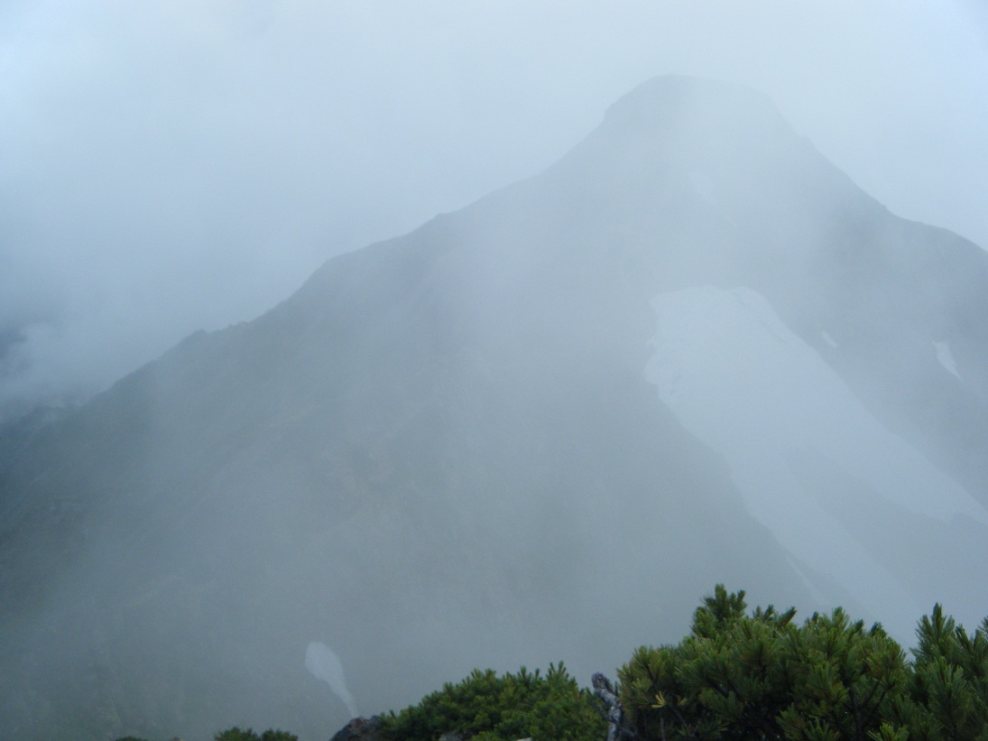 ガスに煙る北峰。どしっとしたこの存在感。優しい感じの南峰とは違いますな。