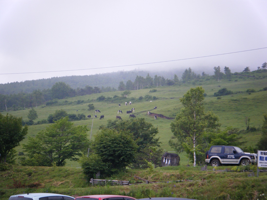 菅平牧場に到着。朝早いけど牛さんたちはすでにお外に出されている。つーかずっと外に出されっぱなしなのか???別荘地を横目に坂道を上がっていくと管理事務所に到着。その下の駐車場に車を停める。時刻は5時45分。この時間でもすでに皆様に続々と出発していた。