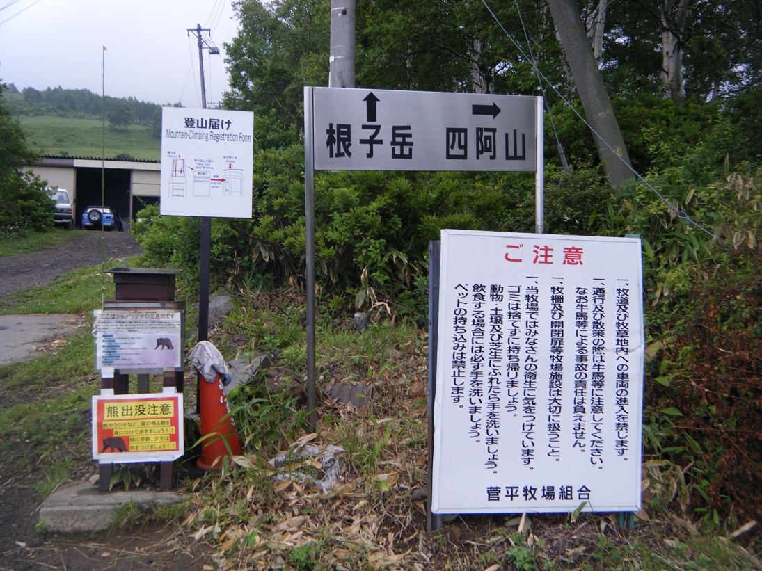 そしていざ出陣。上田菅平ICで高速を降り、セブンイレブンで食料を調達。登山口の菅平牧場を目指す。今日も昨日同様目の前をガスが覆う。雨降りっぽいし気が重いのう。