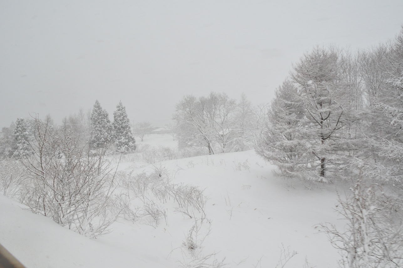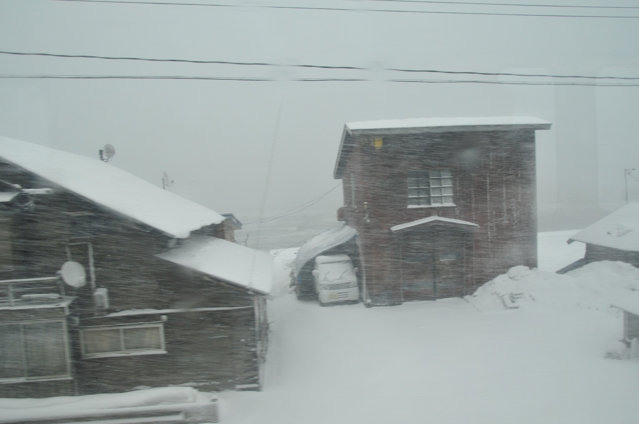 車窓の景色は朝来たときよりもさらにさらに積雪量が増していた。大粒の雪が横殴りで降り続けている。あまりの凄まじい景色に同じ日本でありながらも生活環境の違いを痛感する。この辺りは平地であるにも関わらず普通に生活するだけでも非常に厳しい環境だ。