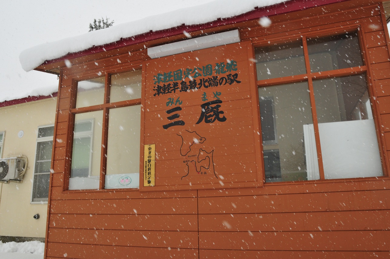 三厩には12:32に到着。30分の遅れである。折り返しは12:42なので10分しか時間がない。足早にホームに降り列車を撮影。続いて駅舎に向かい駅舎の中&外観も撮影。再びホームに戻り再び列車を撮影。蟹田から乗り通した1人旅の大学生風の兄ちゃんとお互いに写真を撮りあう。